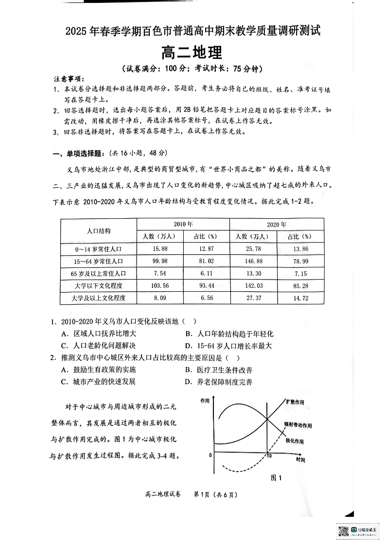 广西壮族自治区百色市2025年春季学期高二年级期末教学质量调研测试地理
