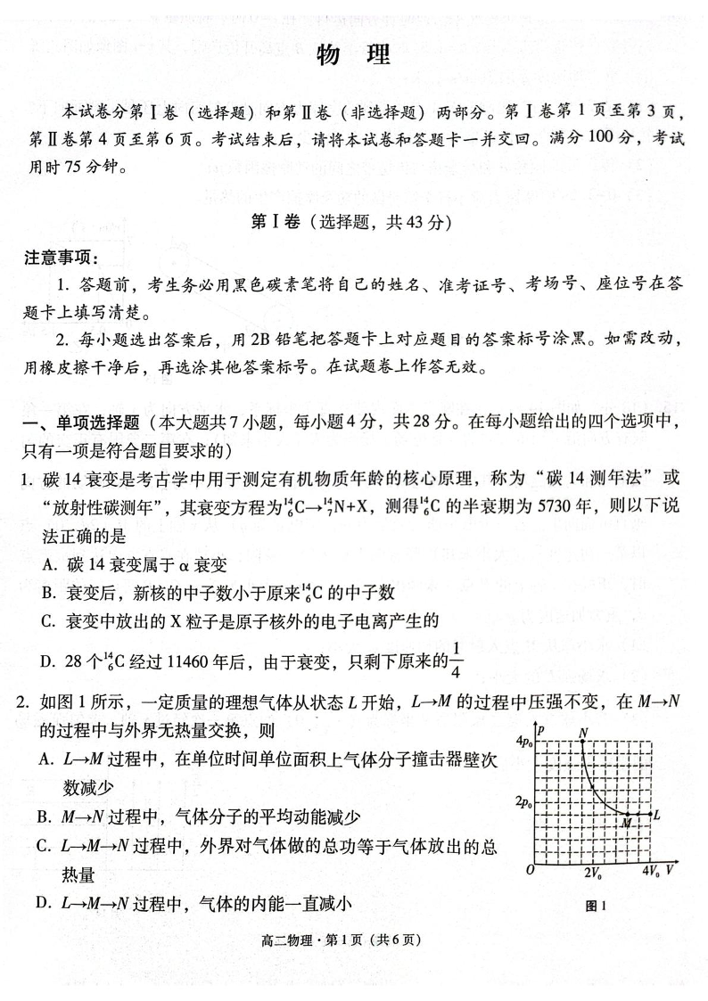 贵州省贵阳市2024-2025学年高二下学期6月期末考试物理