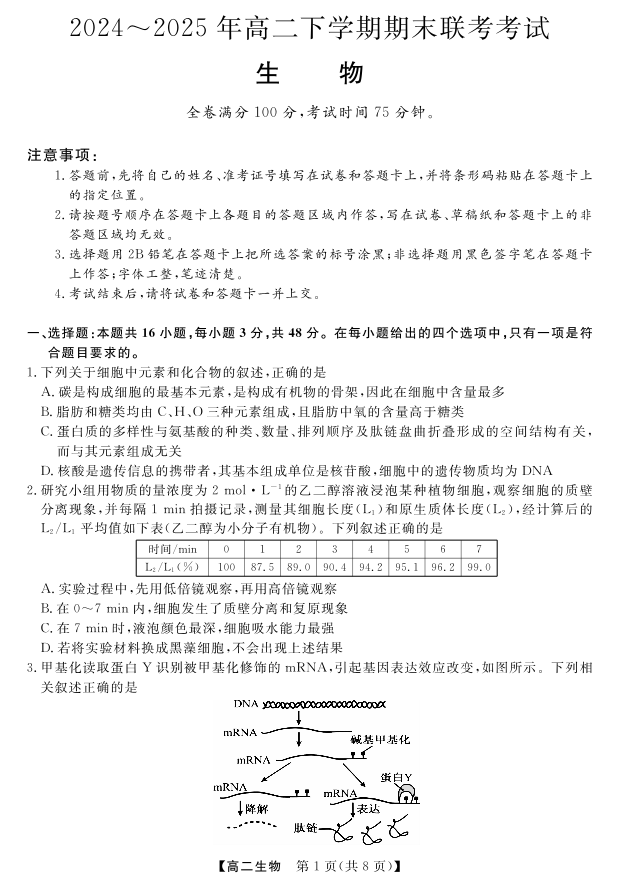 河南省金科·新未来2024-2025学年高二下学期期末联考生物