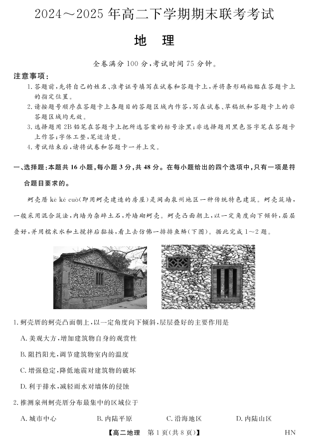 河南省金科·新未来2024-2025学年高二下学期期末联考地理