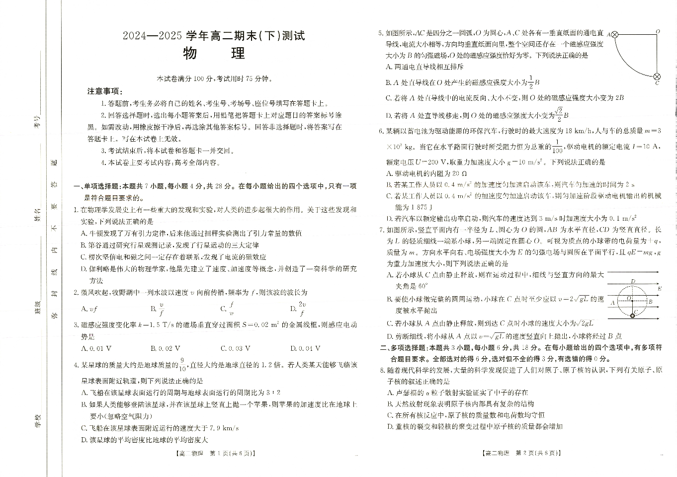 河南省新乡2025年高二7月期末考试物理