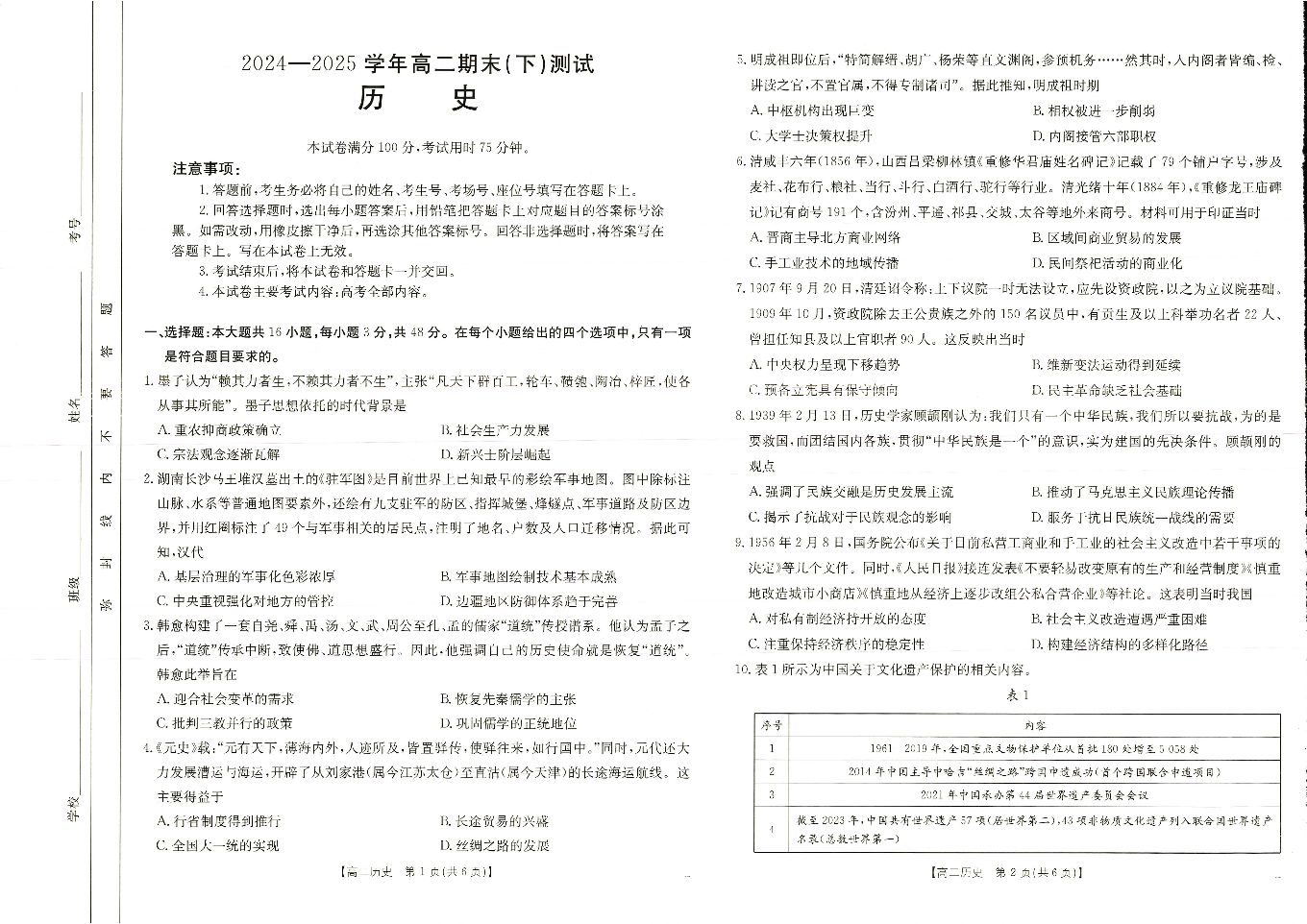 河南省新乡2025年高二7月期末考试历史