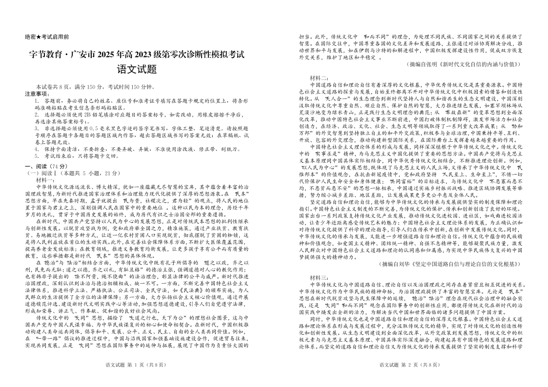 四川省广安市字节教育·2025年高2023级(2026届)零次诊断性模拟考试语文