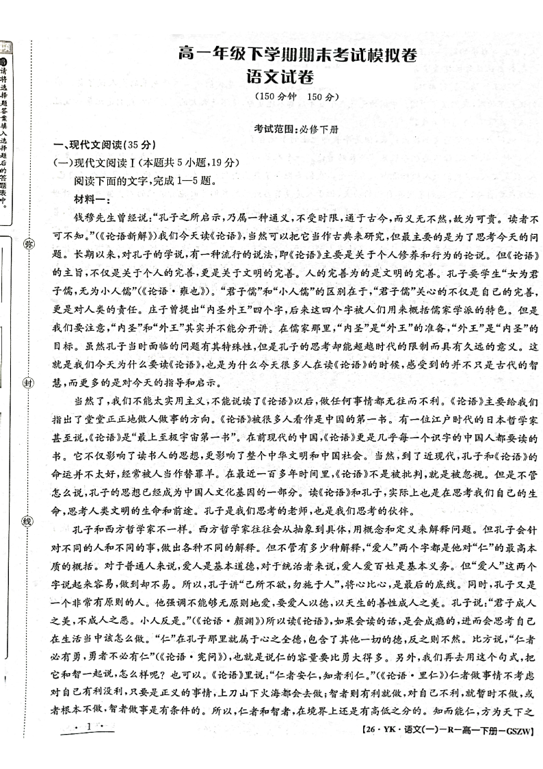 甘肃省2024-2025学年高一年级下学期期末考试语文