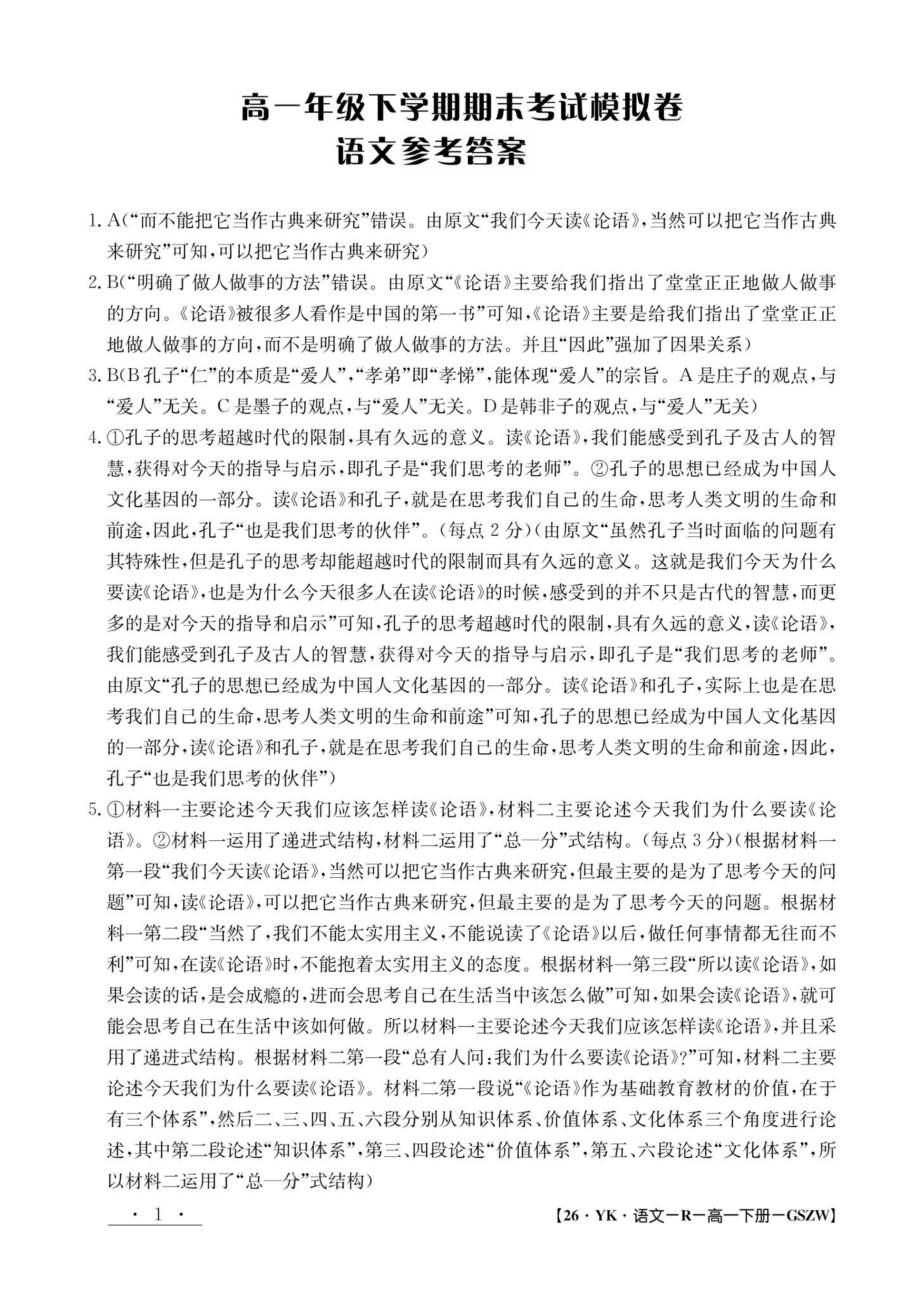 甘肃省2024-2025学年高一年级下学期期末考试语文答案