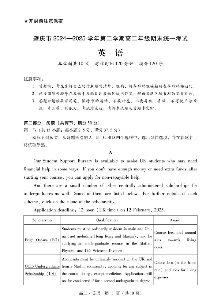 广东省肇庆市2024-2025学年高二下学期期末考试英语