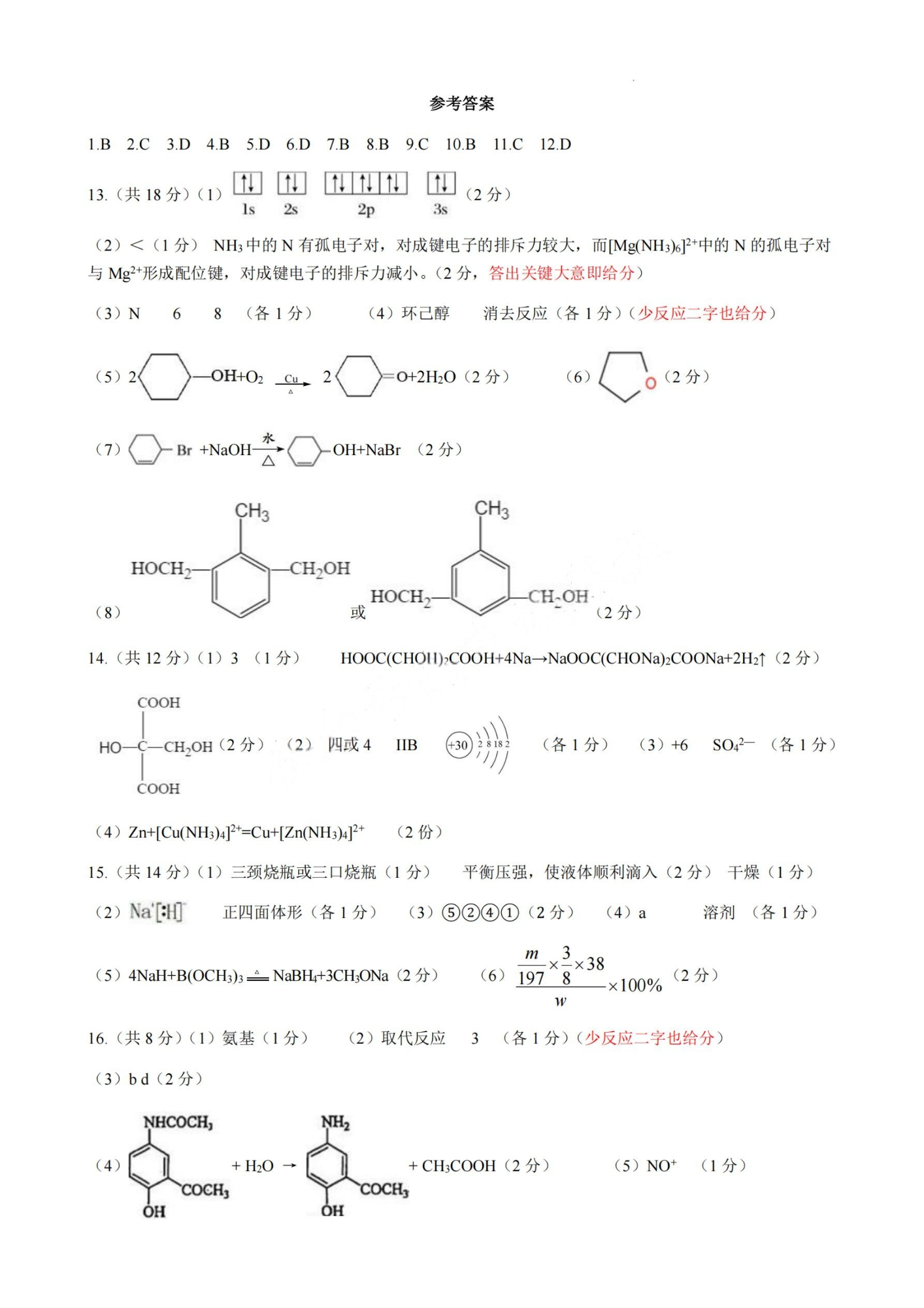高二化学答案--福建省厦泉五校2024-2025学年高二下学期期末联考