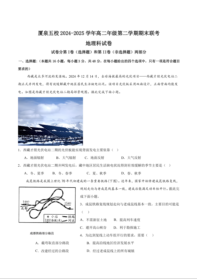 高二地理+答案--福建省厦泉五校2024-2025学年高二下学期期末联考