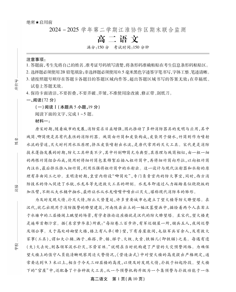 高二语文--安徽省江淮协作区2024-2025学年高二下学期期末联合监测