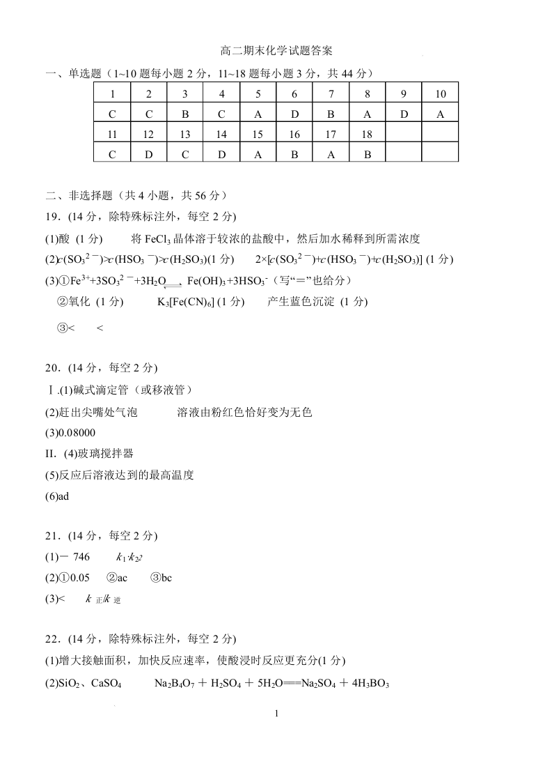 高二化学答案--河北省石家庄市2024-2025学年高二下学期期末教学质量检测