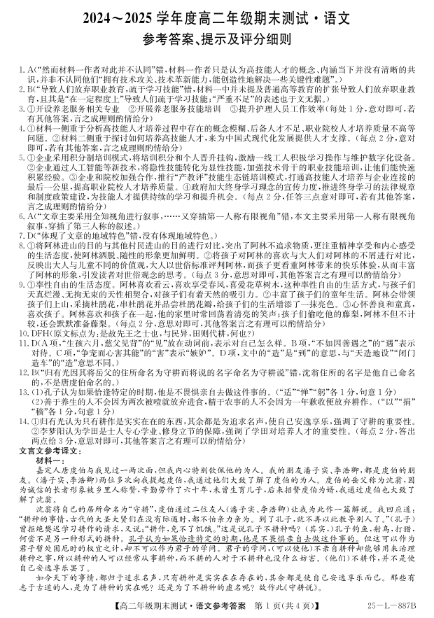 高二语文答案--河北卓越联盟2024-2025学年度高二年级期末测试