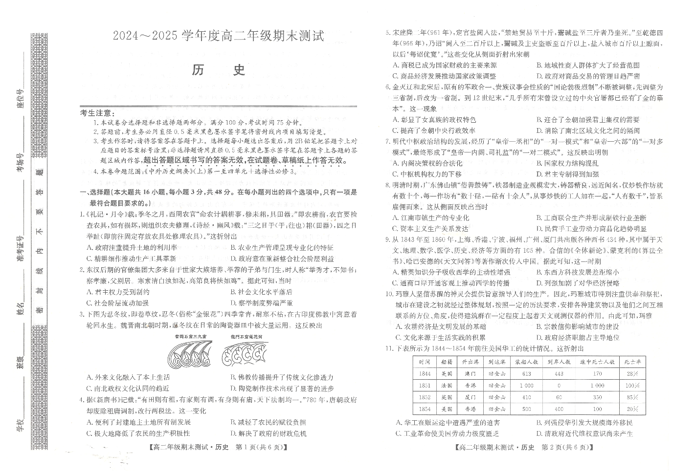 高二历史--河北卓越联盟2024-2025学年度高二年级期末测试