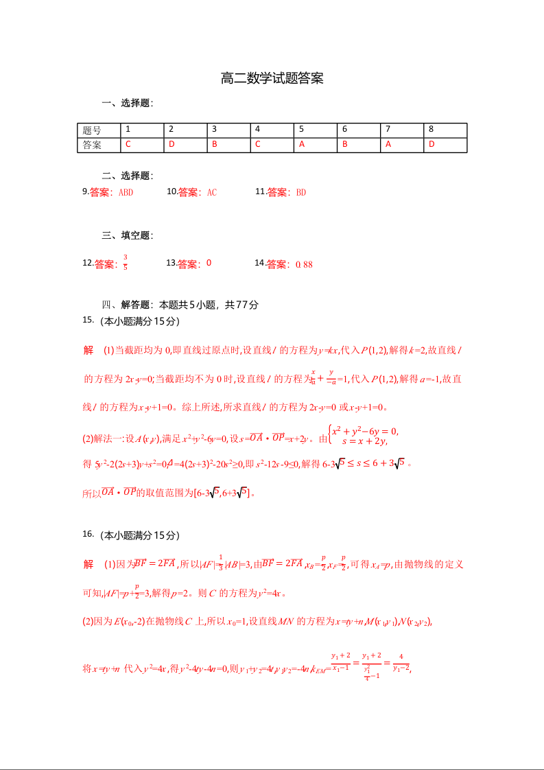 湖北省襄阳市随州部分高中2024-2025学年高二下学期期末联考数学答案