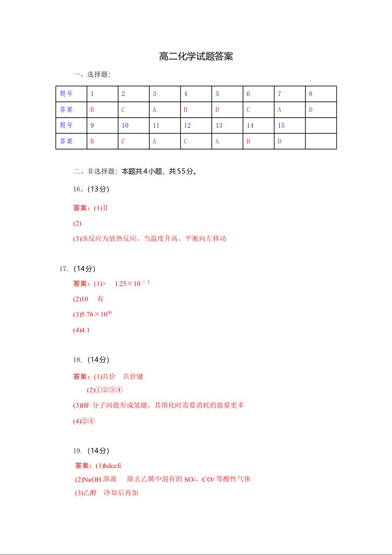 湖北省襄阳市随州部分高中2024-2025学年高二下学期期末联考化学答案