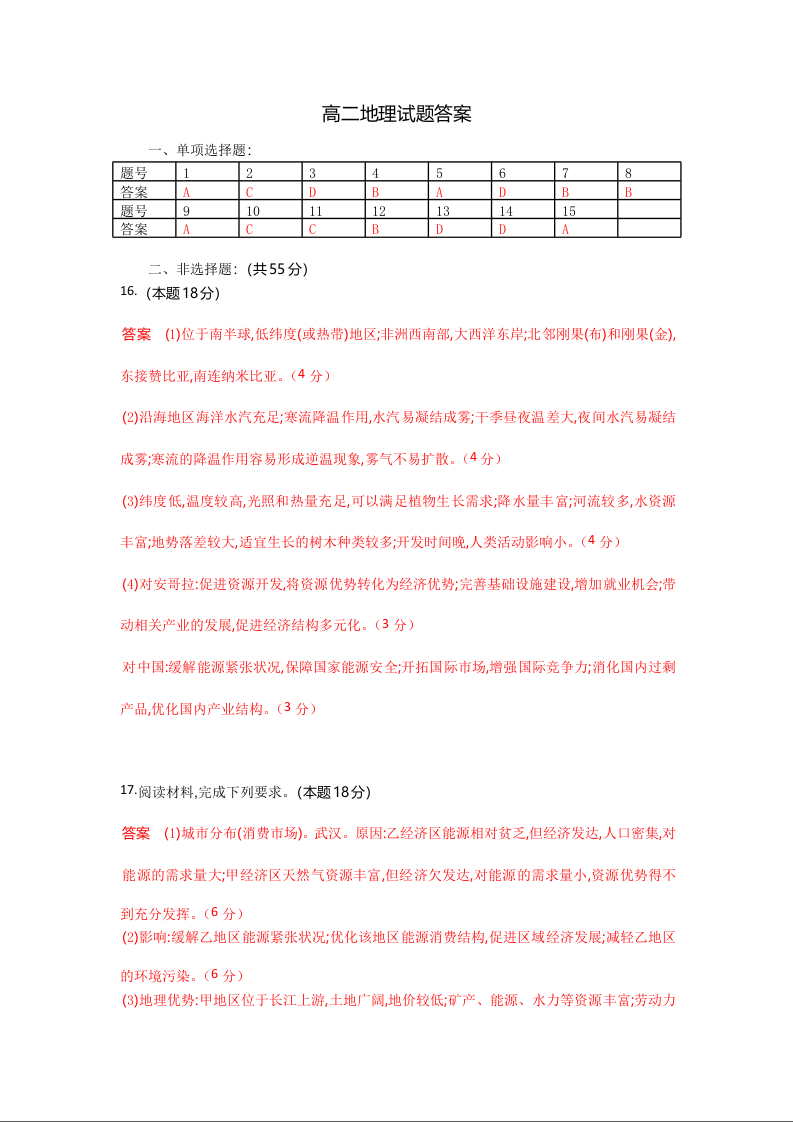 湖北省襄阳市随州部分高中2024-2025学年高二下学期期末联考地理答案