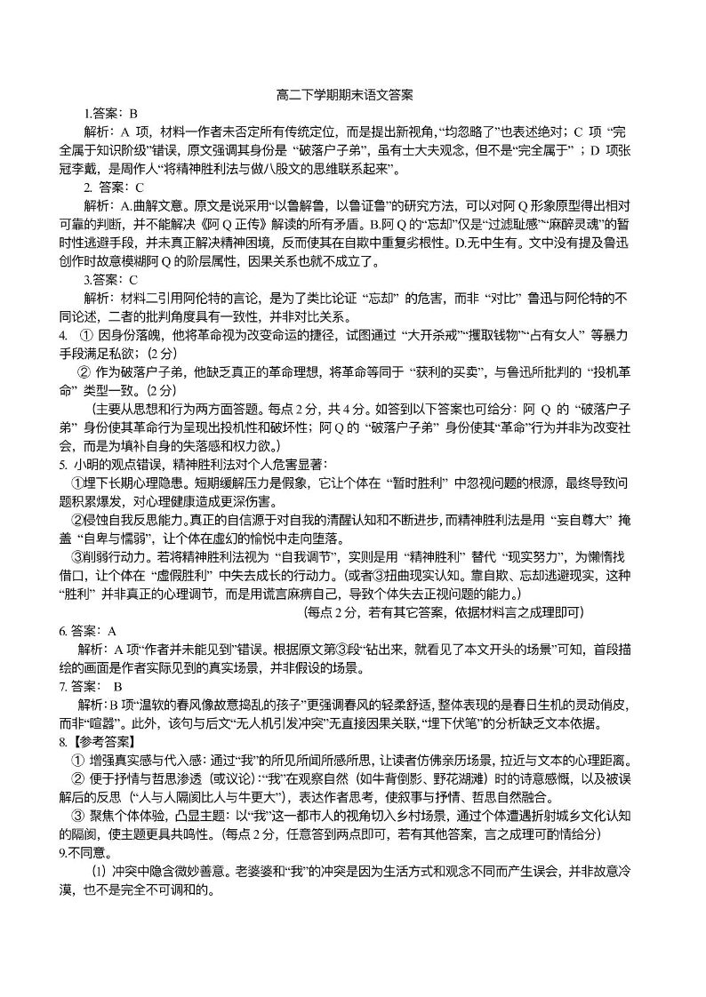 江西省上饶市2024-2025学年下学期期末教学质量检测语文答案