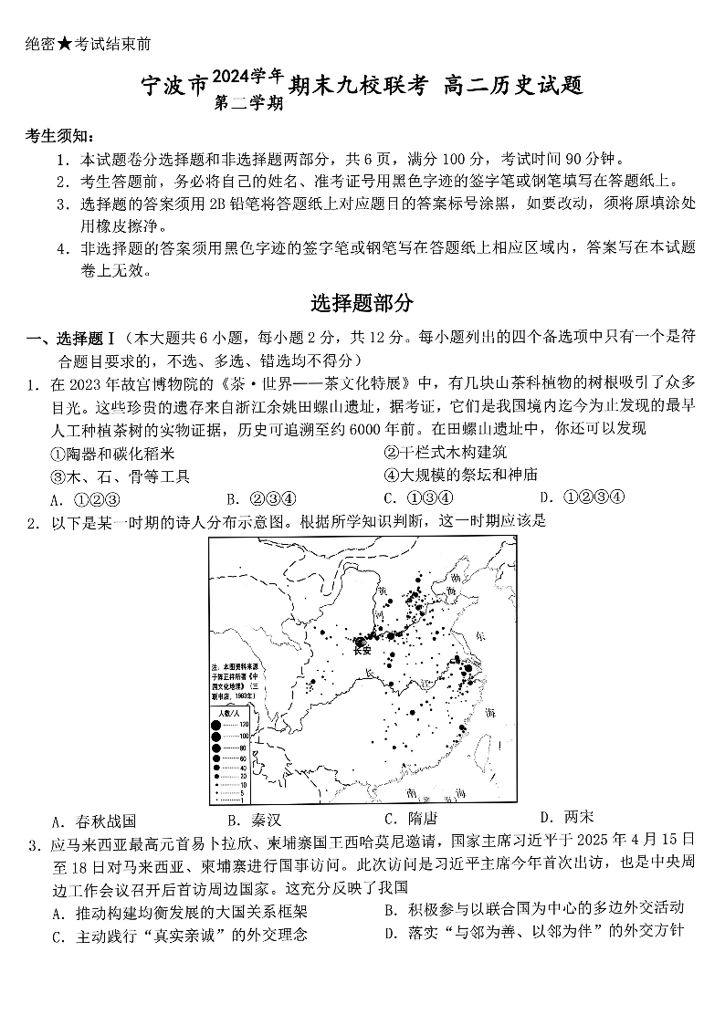 浙江宁波市九校2025年高二下学期6月期末历史+答案