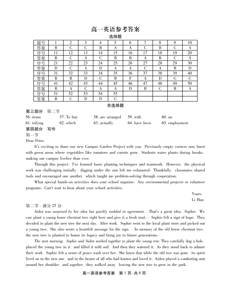 高一英语答案--安徽省江淮协作区2024-2025学年高一下学期期末联合监测
