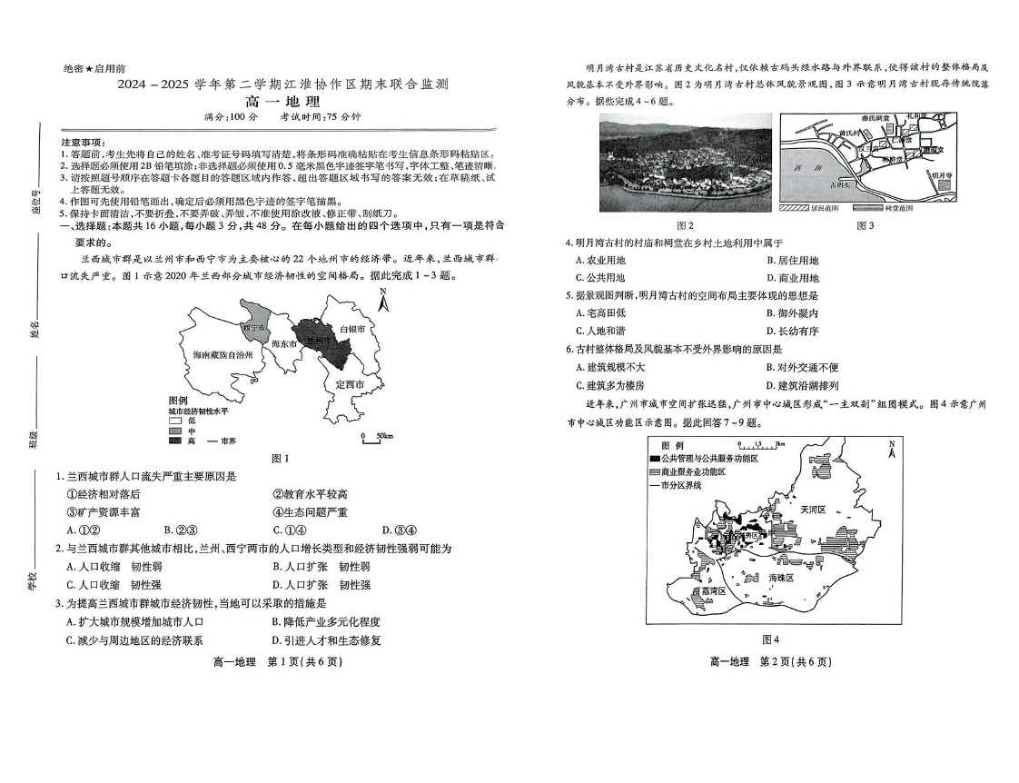 高一地理+答案--安徽省江淮协作区2024-2025学年高一下学期期末联合监测