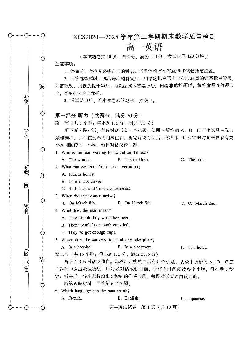 高一英语+答案--河南省许昌市2024-2025学年高一下学期7月期末教学质量检测