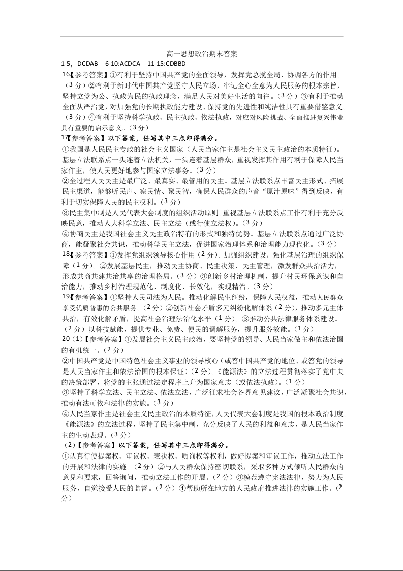 高一政治答案--河南省许昌市2024-2025学年高一下学期7月期末教学质量检测
