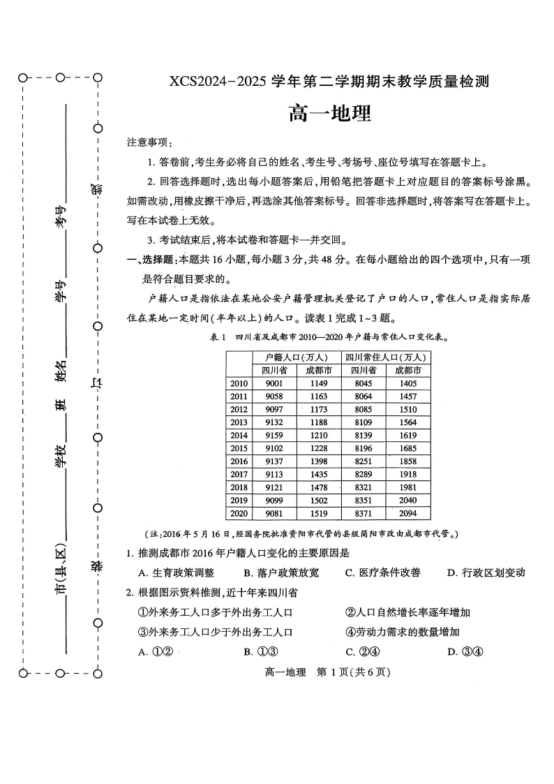 高一地理--河南省许昌市2024-2025学年高一下学期7月期末教学质量检测