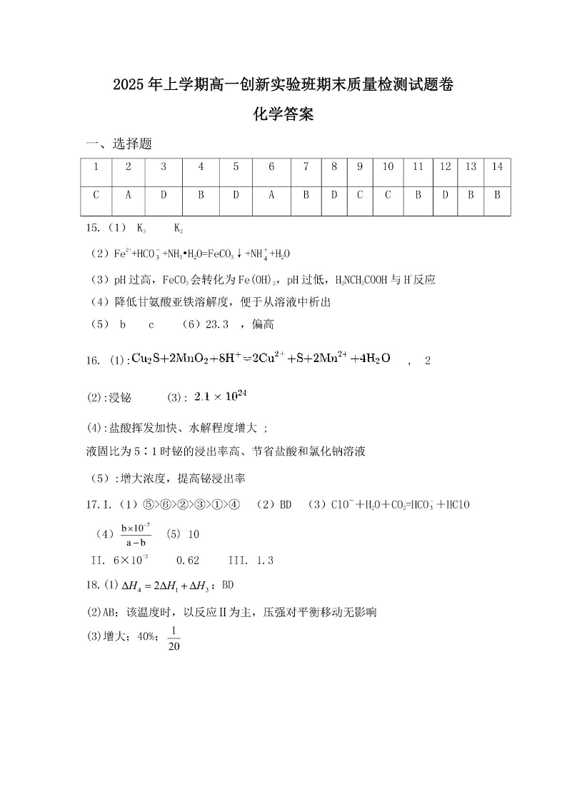 高一化学答案--湖南省衡阳市衡阳县2024-2025学年高一下学期期末质量检测
