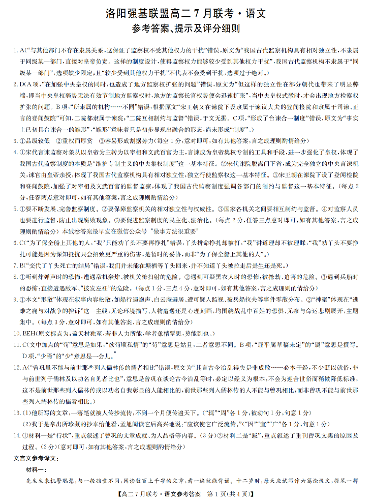 高二语文答案--河南省洛阳市强基联盟2025年7月高二下学期期末联考