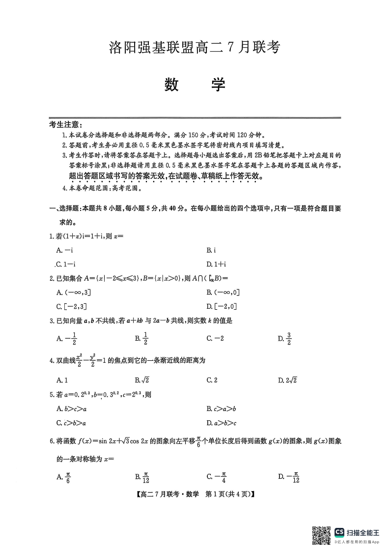 高二数学--河南省洛阳市强基联盟2025年7月高二下学期期末联考