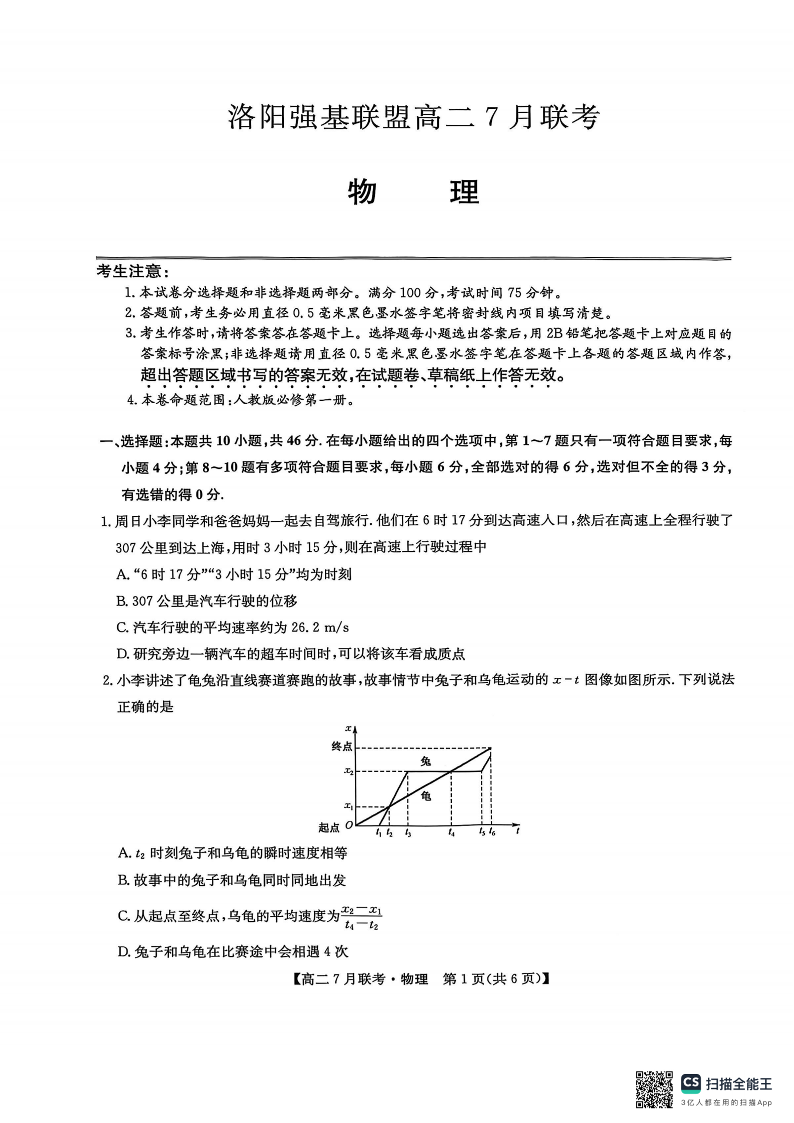 高二物理--河南省洛阳市强基联盟2025年7月高二下学期期末联考