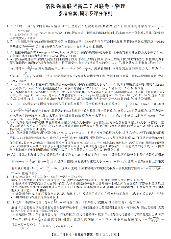 高二物理答案--河南省洛阳市强基联盟2025年7月高二下学期期末联考