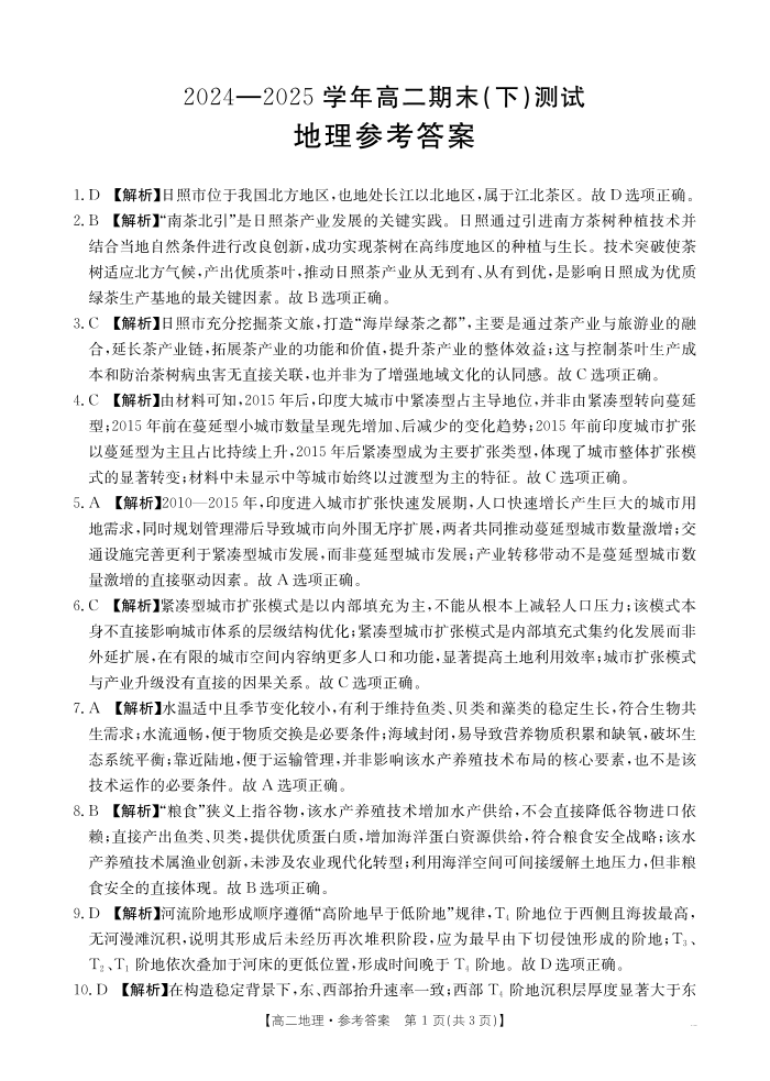 高二地理答案--河南省新乡市2024-2025学年下学期高二金太阳期末考试