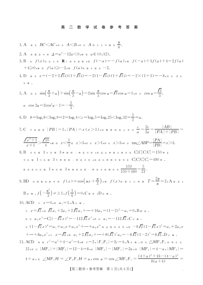 高二数学答案--湖南省衡阳市2024-2025学年高二下学期7月期末考试