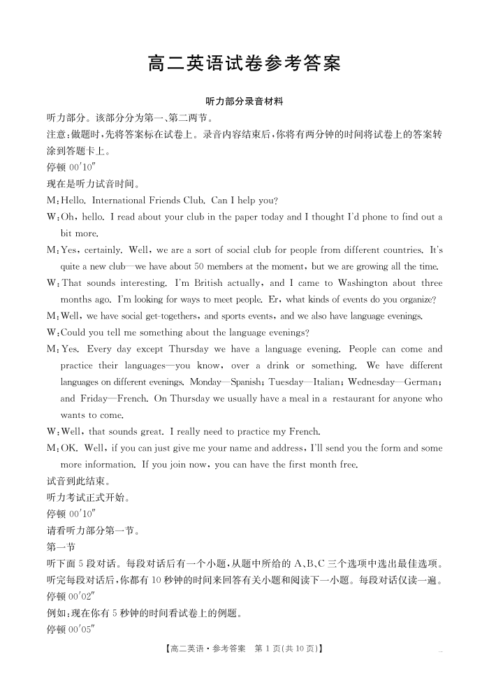 高二英语答案--湖南省衡阳市2024-2025学年高二下学期7月期末考试
