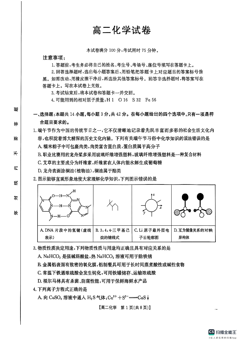 高二化学+答案--湖南省衡阳市2024-2025学年高二下学期7月期末考试