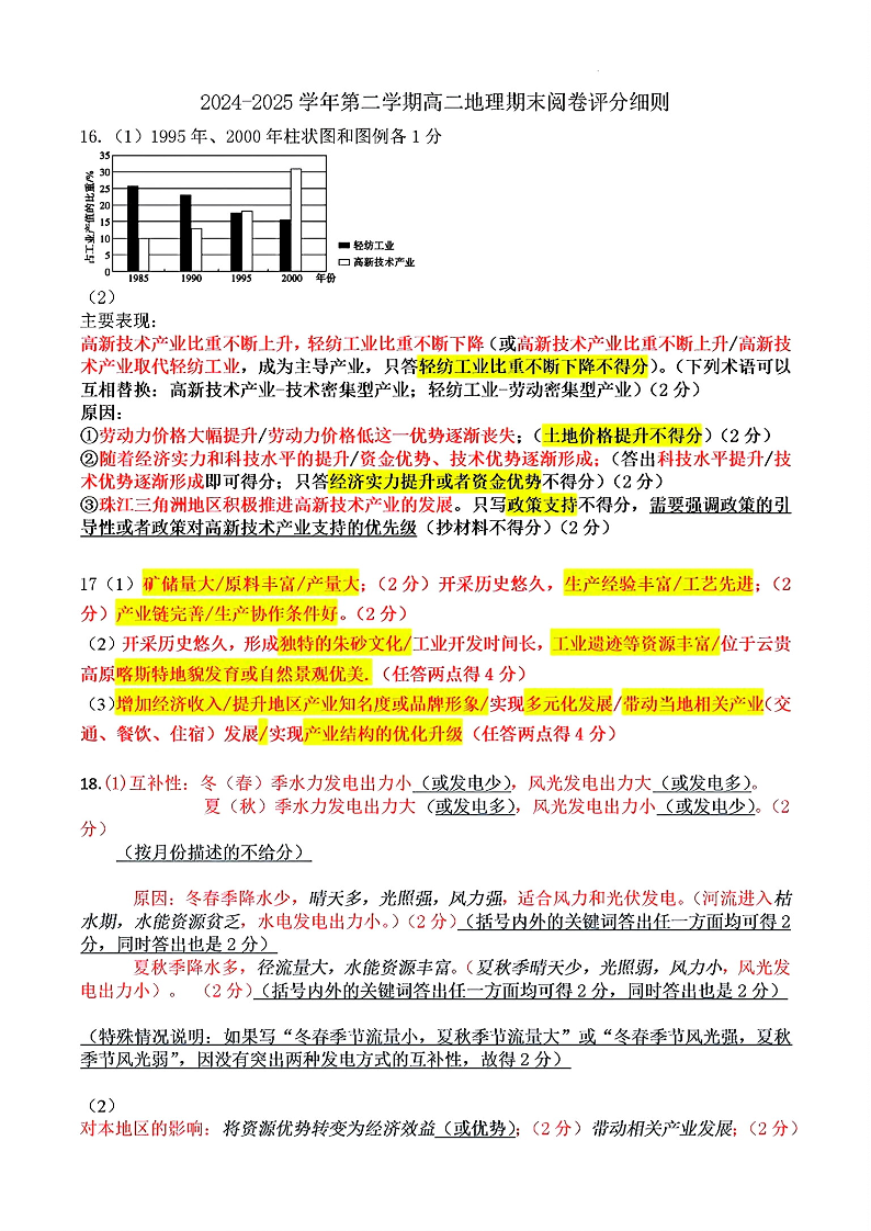 高二地理答案--山东省淄博市2026届第二学期高二教学质量检测