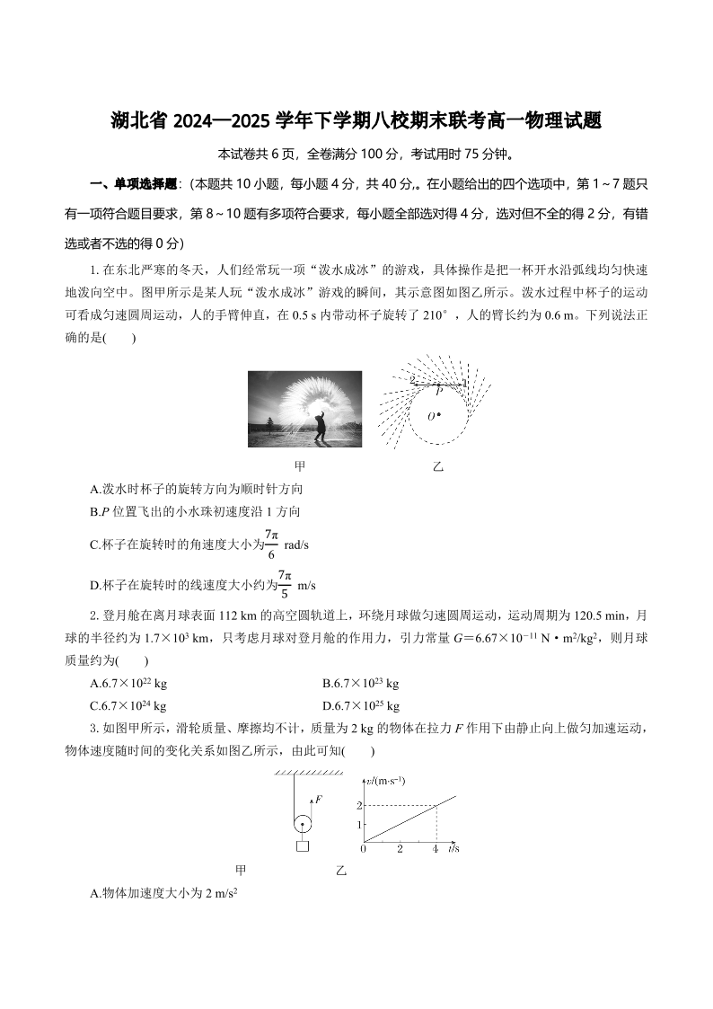 湖北省八校联考2024-2025学年高一下学期期末联考物理+答案