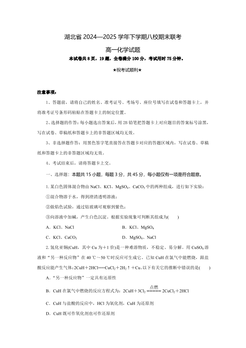 湖北省八校联考2024-2025学年高一下学期期末联考化学(原卷版)
