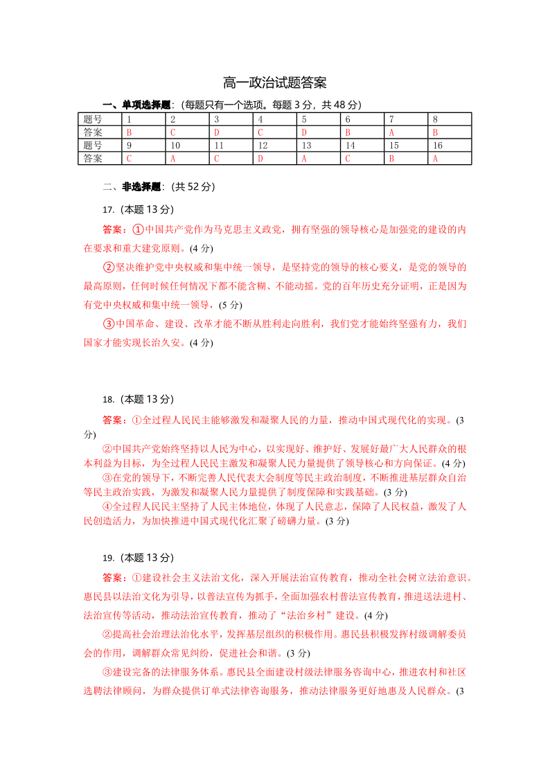 湖北省八校联考2024-2025学年高一下学期期末联考政治答案
