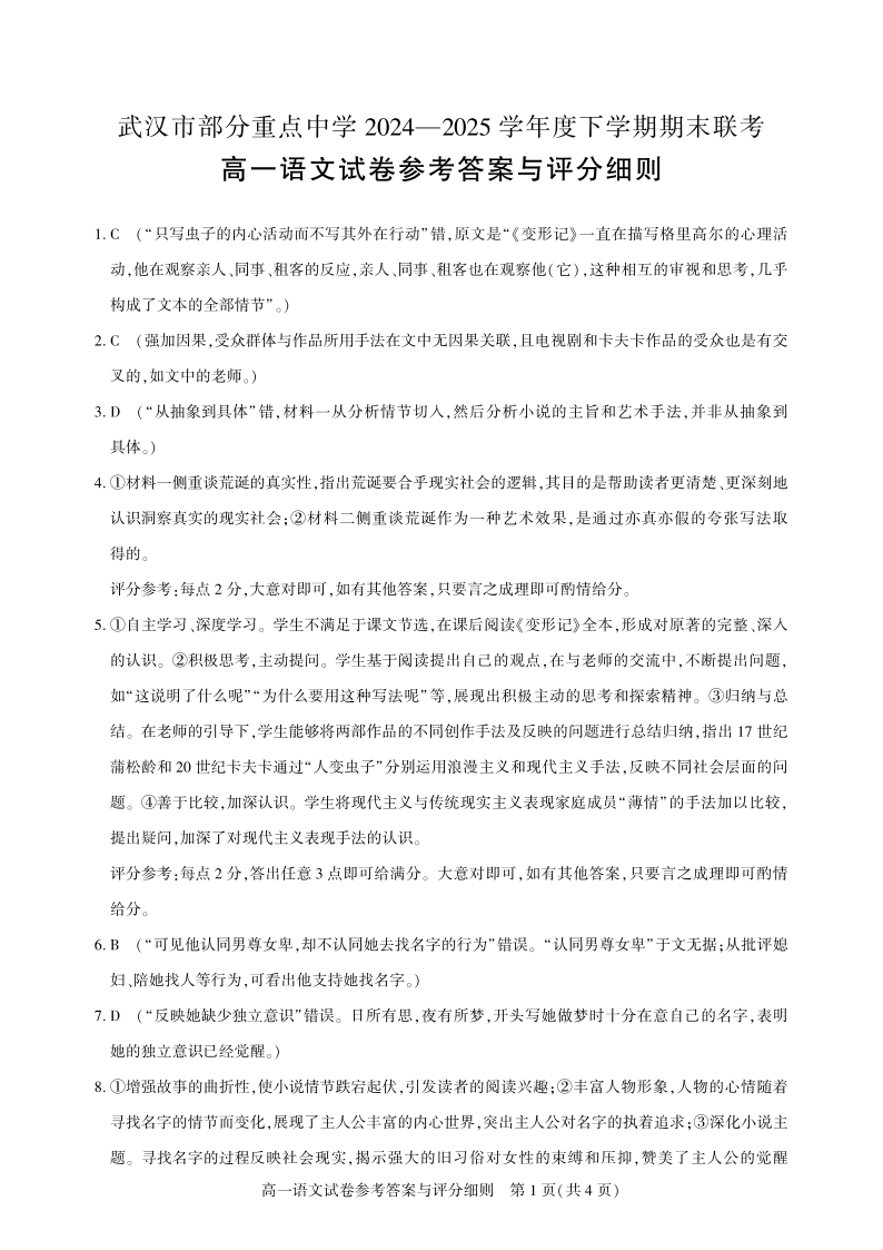湖北省武汉市七彩联盟2024-2025学年度下学期高一年级6月联考语文答案