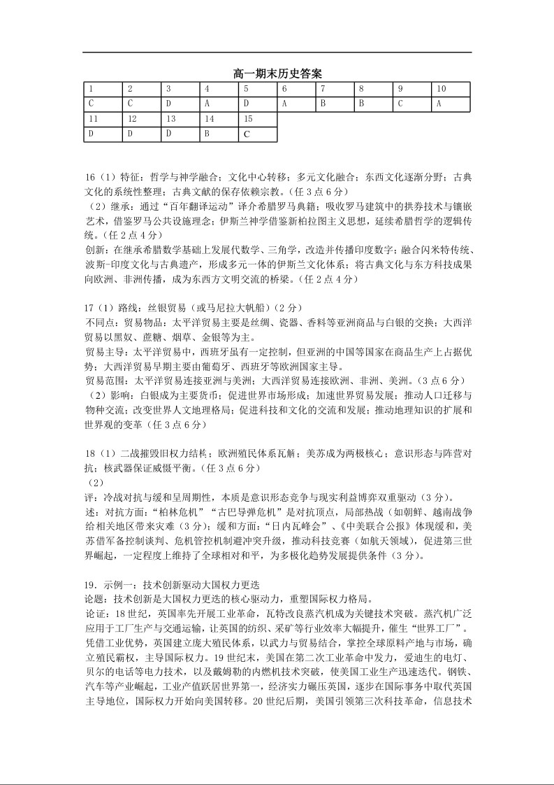 湖北省武汉市七彩联盟2024-2025学年度下学期高一年级6月联考历史答案