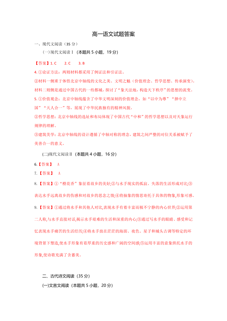 湖北省襄阳随州部分高中2024-2025学年高一下学期期末联考语文答案