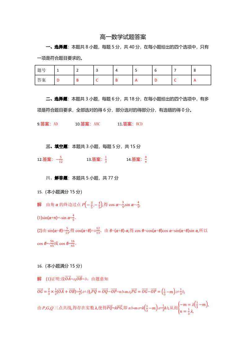 湖北省襄阳随州部分高中2024-2025学年高一下学期期末联考数学答案