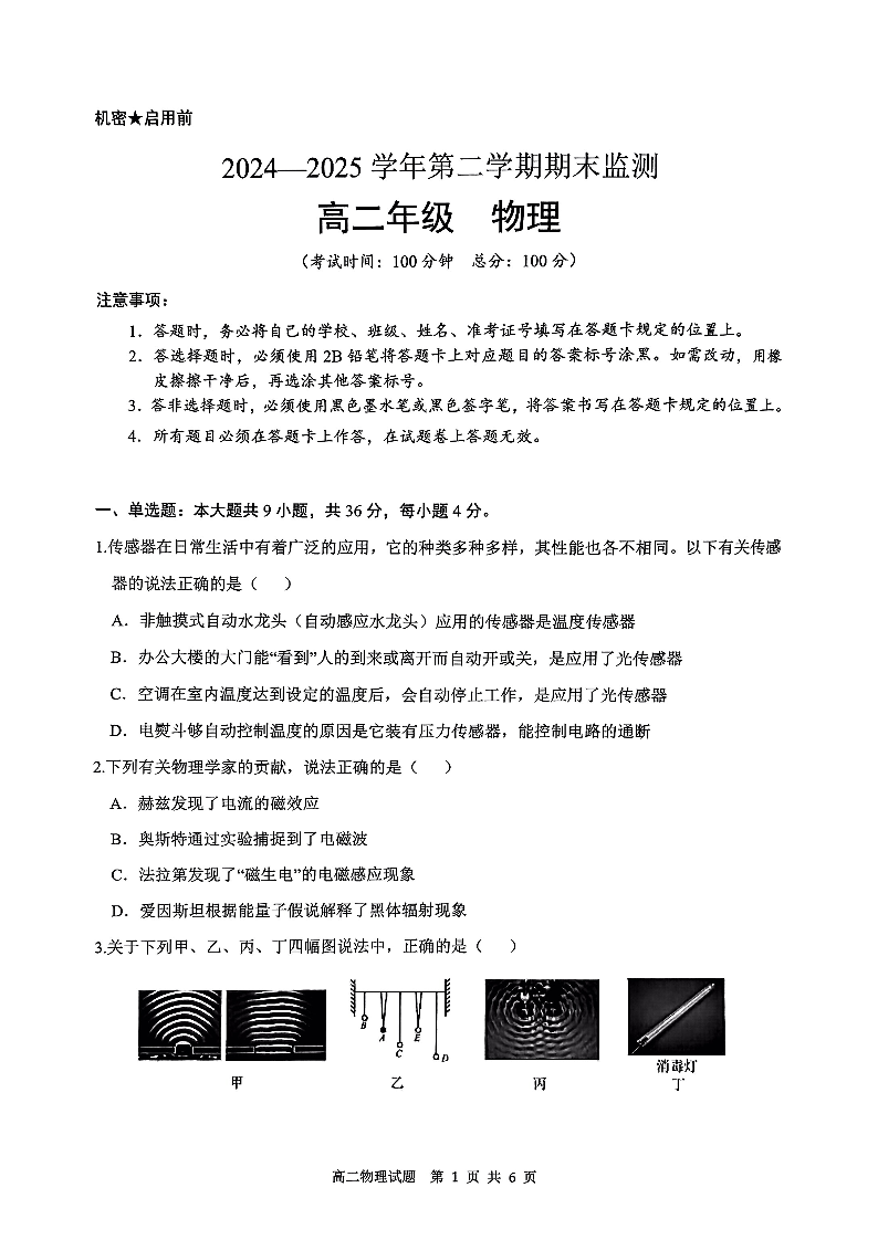巴音郭楞蒙古自治州2024-2025学年高二下学期6月期末物理