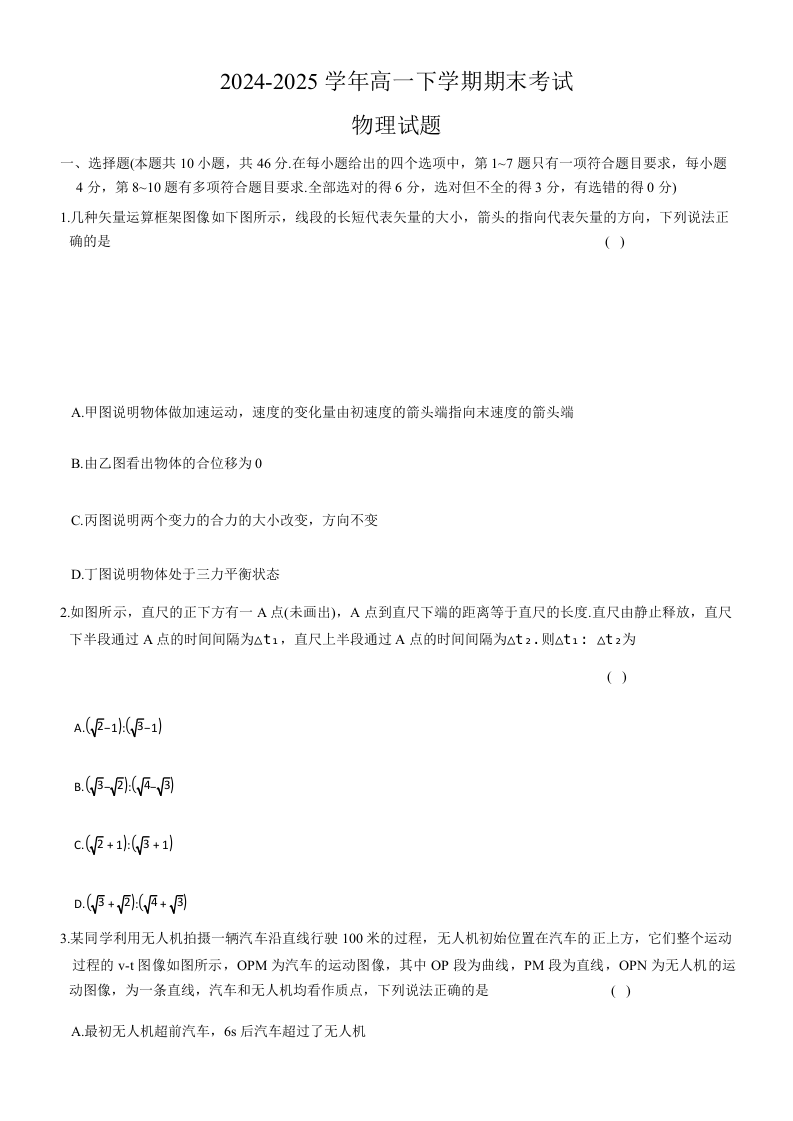 高一物理+答案--河北省邢台市名校联考2024-2025学年高一下学期7月期末