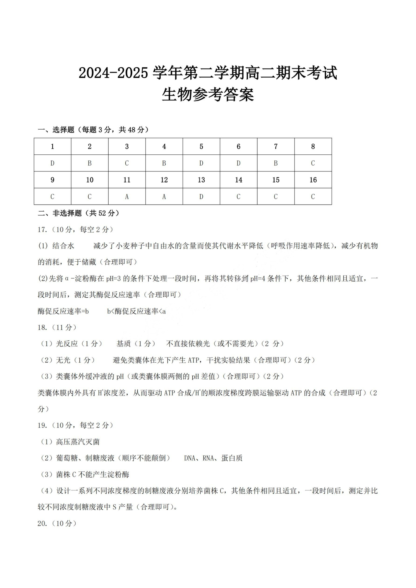 高二生物答案--河南省许昌市XCS2024-2025学年第二学期高二期末教学质量检测