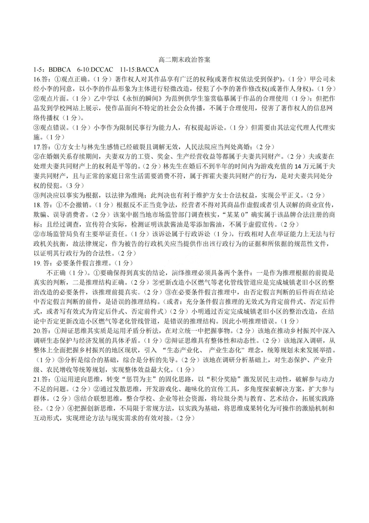 高二政治答案--河南省许昌市XCS2024-2025学年第二学期高二期末教学质量检测