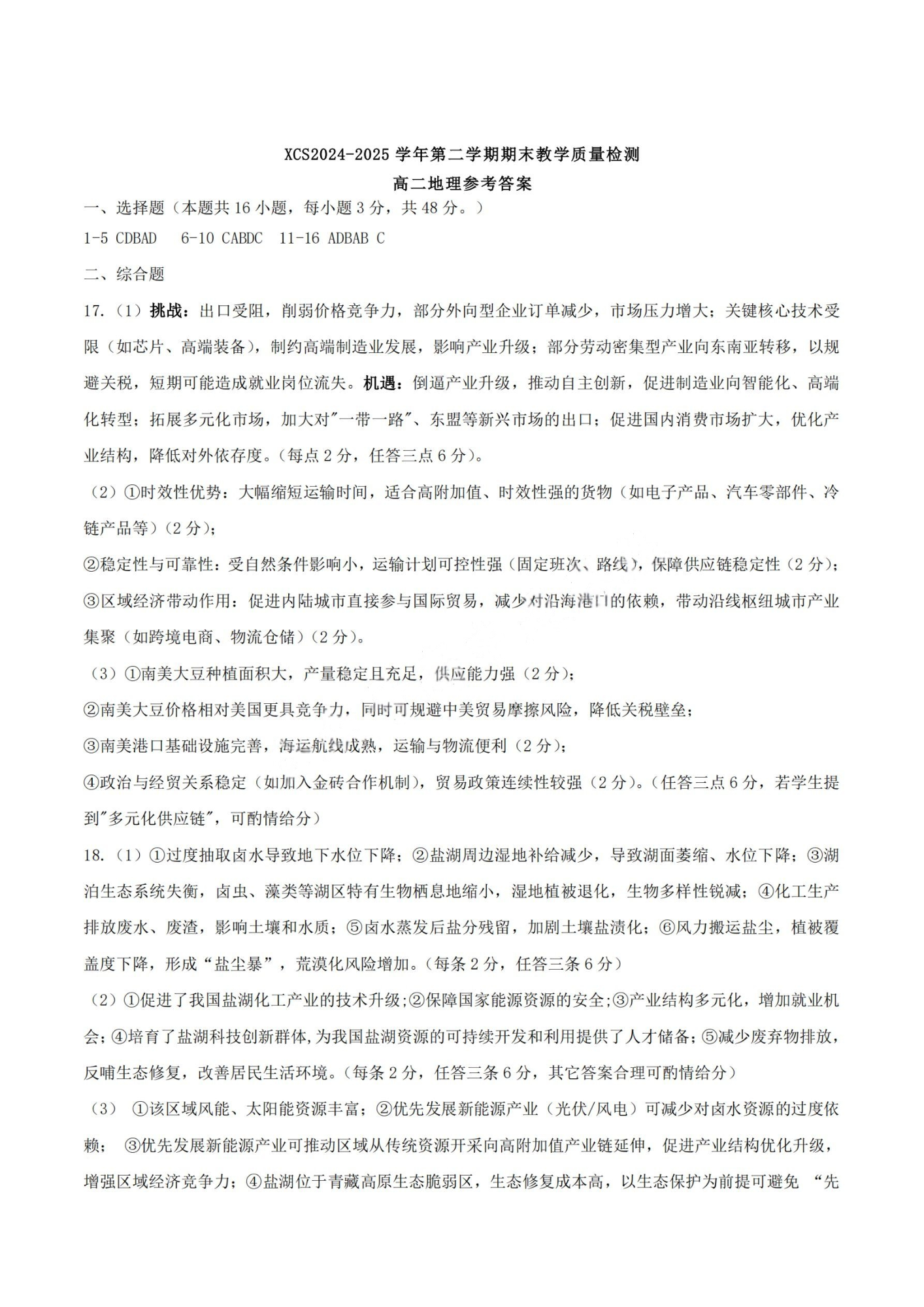 高二地理答案--河南省许昌市XCS2024-2025学年第二学期高二期末教学质量检测