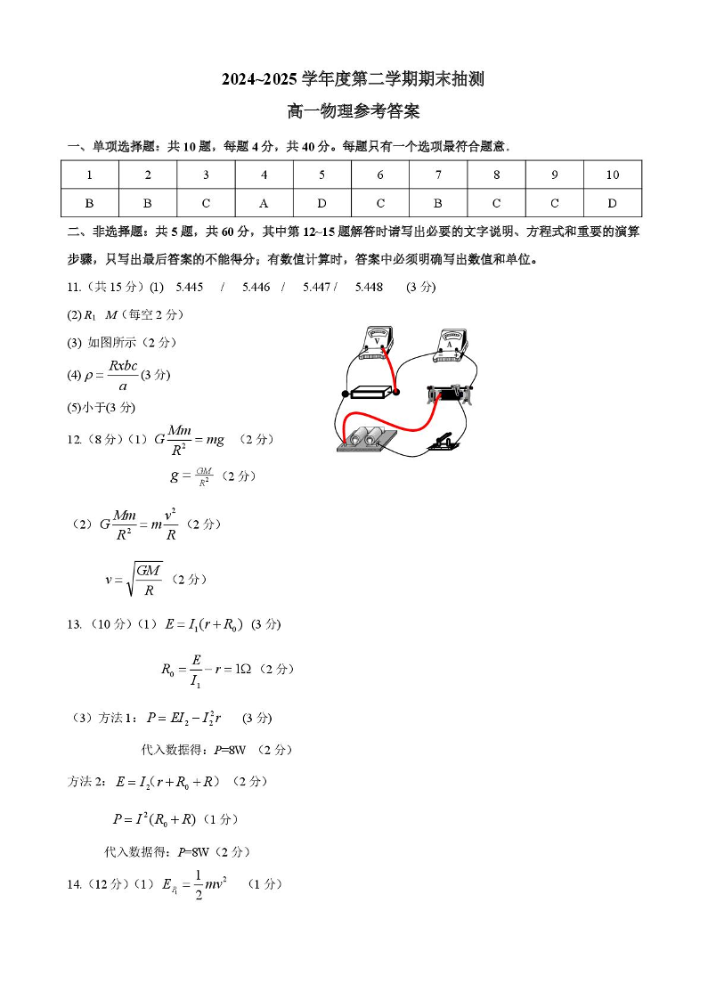 江苏省徐州市2024-2025学年高一年级下学期期末考试物理答案