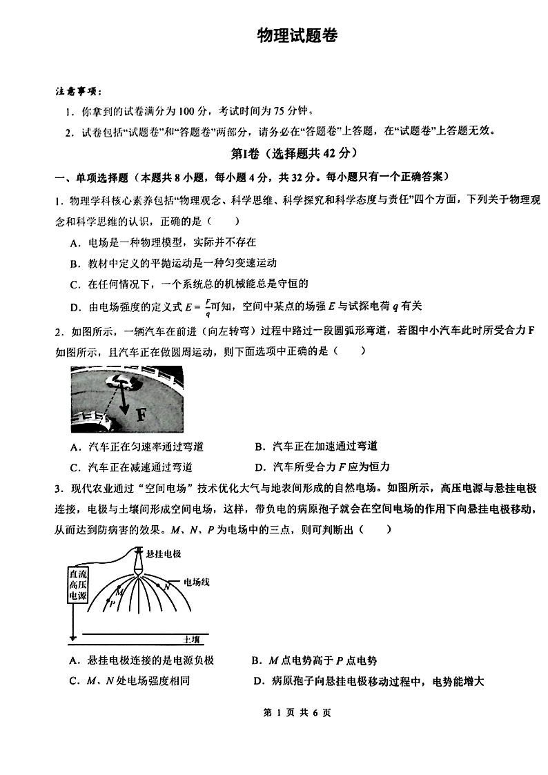 高一物理+答案--安徽省智学联考2024-2025学年高一下学期7月期末考试